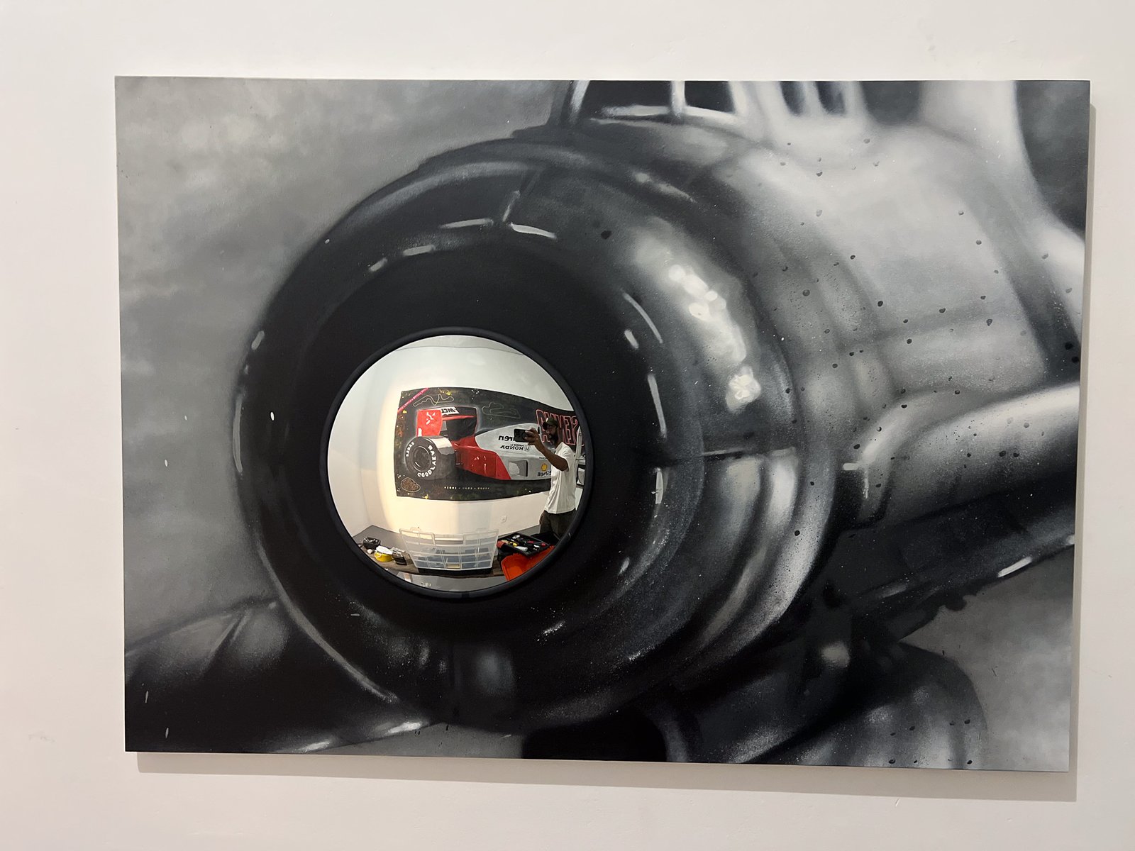 Confronto se estabelece, assim, como território híbrido: pintura, objeto e experiência se fundem em um gesto de expansão da linguagem visual. O automóvel — referência recorrente no trabalho do artista — deixa de ser somente representado para se tornar campo de diálogo direto entre arte, cultura e percepção.